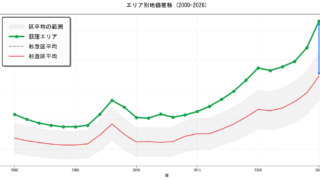 【2026年最新】杉並区の土地価格・相場を徹底分析。平均6,340万円という事実から、坪単価8.9倍のエリア格差、予算別のおすすめエリアまで、26年間の推移データで解説。高いエリア・安い穴場エリアをランキング形式で公開します。家を建てる前の必読ガイド。